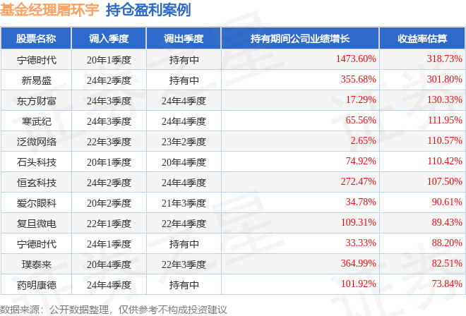 屠环宇管理的华夏创新前沿股票A基金在20年1季度买入宁德时代,已连续持有5年又3个季度。持有期间的估算收益率为318.73%,持有期间宁德时代在2020年到2025年的中报归属净利润增幅达1473.6%。
