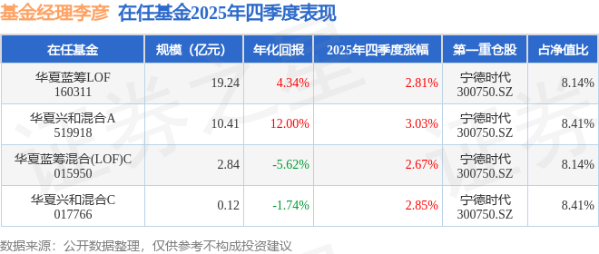 证券之星消息,截止2025年四季度末,基金经理李彦旗下共管理4只基金,本季度表现最佳的为华夏兴和混合A(519918),季度净值涨3.03%。