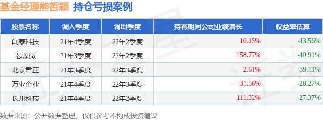 熊哲颖管理的申万菱信智能汽车股票A基金在21年4季度买入闻泰科技,在持有2个季度后在22年2季度卖出。持有期间的估算收益率为-43.56%,持有期间闻泰科技在2021年到2022年的年报营业总收入增幅达10.15%。