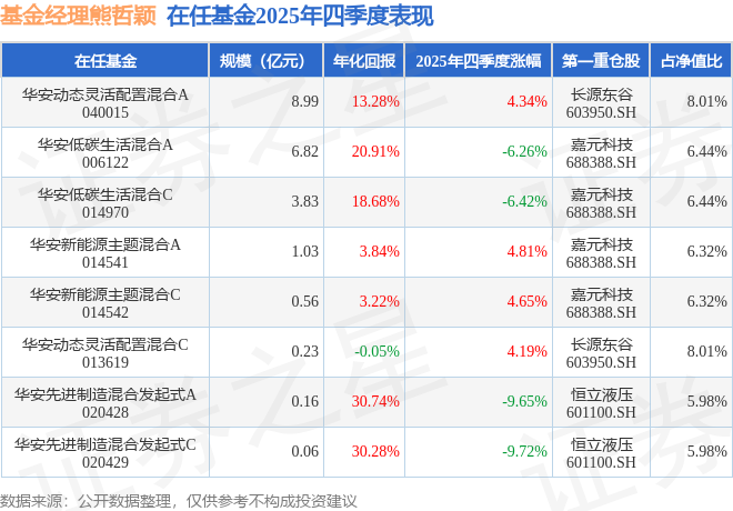 证券之星消息,截止2025年四季度末,基金经理熊哲颖旗下共管理8只基金,本季度表现最佳的为华安新能源主题混合A(014541),季度净值涨4.81%。