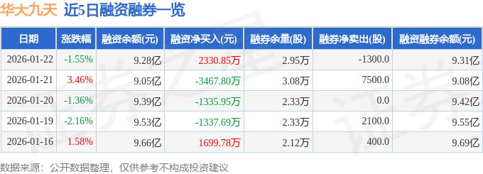 近5日融资融券数据一览见下表: