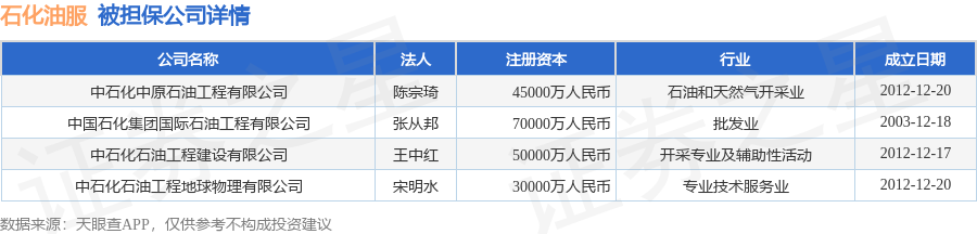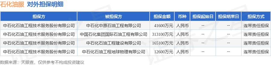 石化油服1月21日披露4笔对外担保,被担保公司4家。对外担保明细如下表: