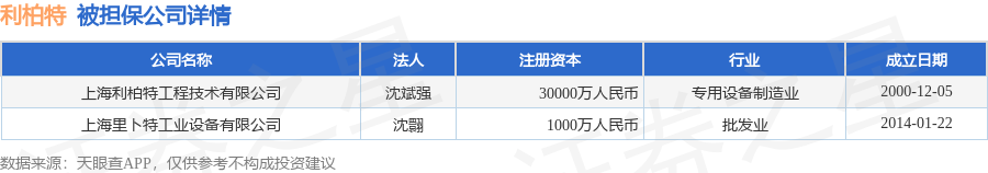 利柏特1月23日披露总额5.2亿元的对外担保,被担保公司2家。本次担保的担保方式为连带责任担保。