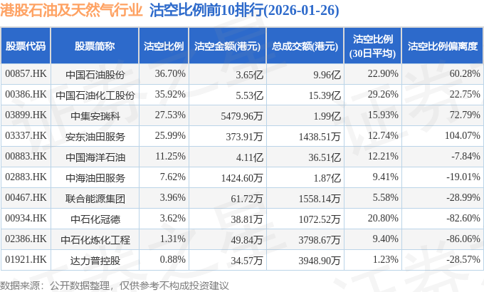 从沽空比例来看,中国石油股份、中国石油化工股份、中集安瑞科沽空比例位居行业前三,分别为36.7%、35.92%、27.53%。