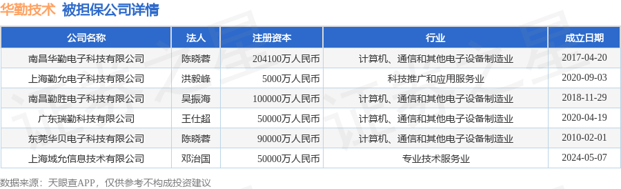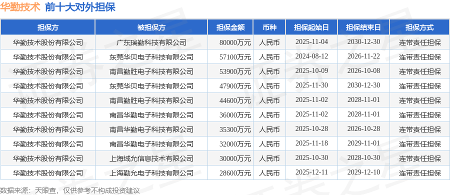 华勤技术1月23日披露20笔对外担保,被担保公司11家。担保金额排在前十的对外担保明细如下表: