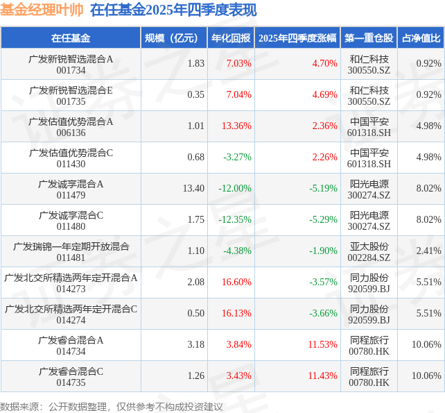 证券之星消息,日前广发新锐智选混合A基金公布四季报,2025年四季度最新规模1.83亿元,季度净值涨幅为4.7%。