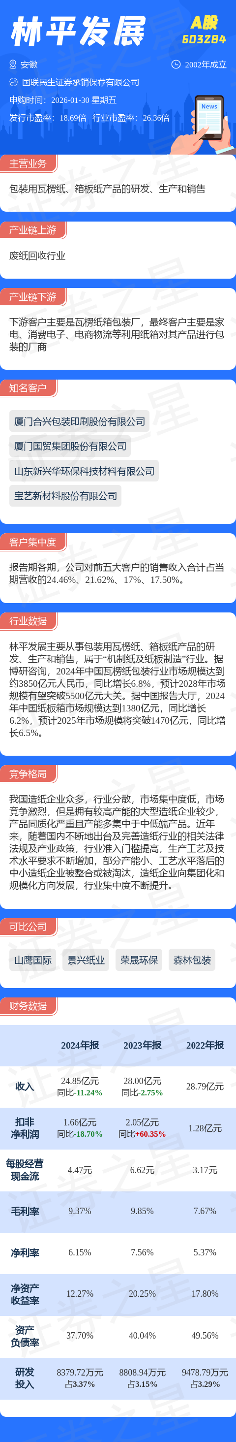 证券之星消息,林平发展1月30日网上申购,申购代码为732284,中签号公布日期为2月3日。该股概况请见下图: