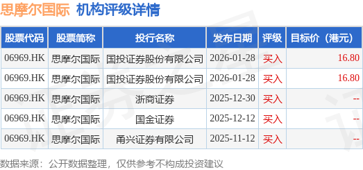 投行对该股的评级以买入为主,近90天内共有5家投行给出买入评级,近90天的目标均价为16.8港元。国投证券股份有限公司最新一份研报给予思摩尔国际买入评级,目标价16.8港元。