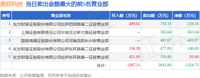 证券之星消息,沪深交易所2026年1月29日公布的交易公开信息显示,美邦科技(920471)因当日换手率达到20%的前5只股票登上龙虎榜。此次是近5个交易日内第2次上榜。
