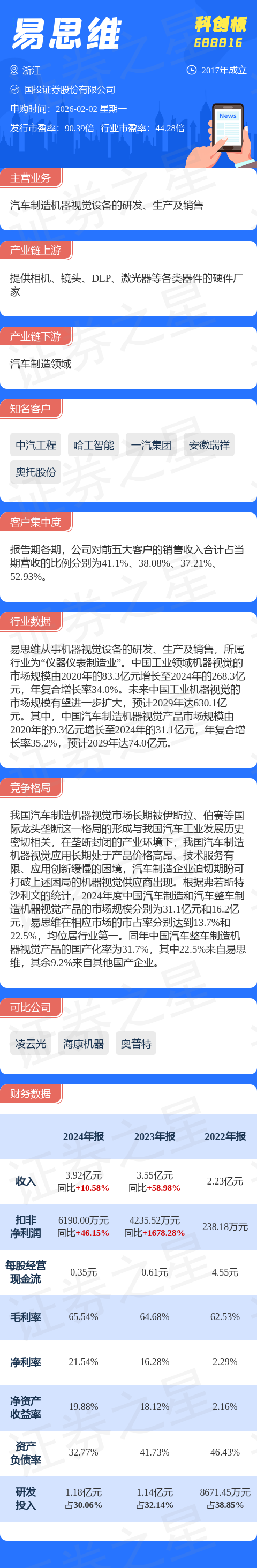 证券之星消息,易思维2月2日网上申购,申购代码为787816,中签号公布日期为2月4日。该股概况请见下图: