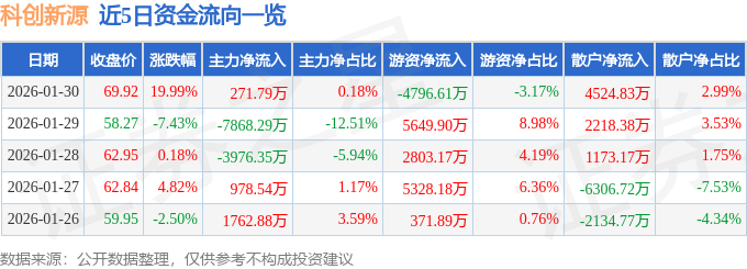 1月30日的资金流向数据方面,主力资金净流入271.79万元,占总成交额0.18%,游资资金净流出4796.61万元,占总成交额3.17%,散户资金净流入4524.83万元,占总成交额2.99%。