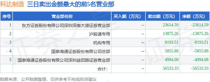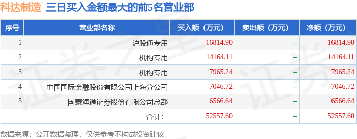 证券之星消息,沪深交易所2026年1月30日公布的交易公开信息显示,科达制造(600499)因非ST、*ST和S证券连续三个交易日内收盘价格涨幅偏离值累计达到20%的证券登上龙虎榜。此次是近5个交易日内第1次上榜。