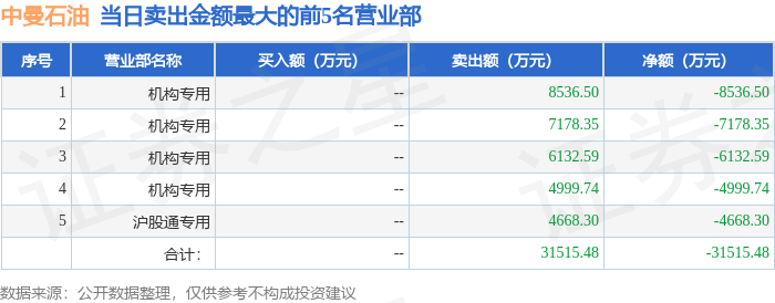 证券之星消息,沪深交易所2026年1月30日公布的交易公开信息显示,中曼石油(603619)因有价格涨跌幅限制的日价格振幅达到15%的前五只证券登上龙虎榜。此次是近5个交易日内第2次上榜。