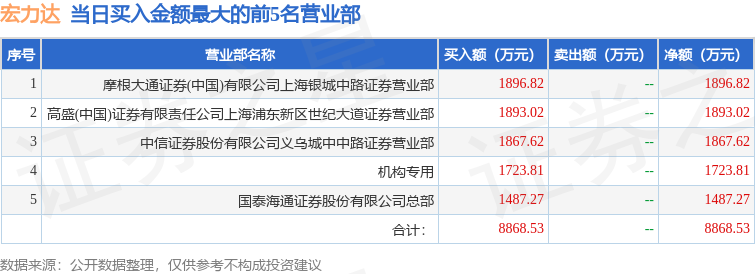 证券小知识:龙虎榜是交易所披露的竞价交易公开信息,现身龙虎榜的个股都是当日最为活跃的个股,是投资者日常重点关注的数据。交易所公布当日买入金额和卖出金额前五名的席位,其中一些席位代表特殊意义,如机构专用席位是指基金专用席位、券商自营专用席位、社保专用席位、券商理财专用席位、保险机构专用席位、保险机构租用席位、QFII专用席位等机构投资者买卖证券的专用通道和席位。深股通专用、沪股通专用为北向资金的交易席位。