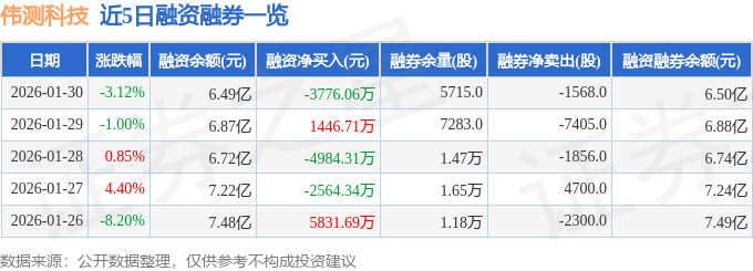 伟测科技融资融券信息显示,融资方面,当日融资买入1.06亿元,融资偿还1.44亿元,融资净偿还3776.06万元。融券方面,融券卖出865.0股,融券偿还2433.0股,融券余量5715.0股,融券余额74.91万元。融资融券余额6.5亿元。