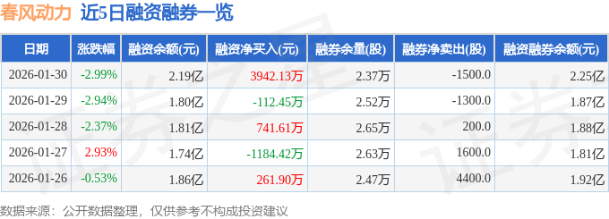 证券之星消息,截至2026年1月30日收盘,春风动力(603129)报收于251.88元,下跌2.99%,换手率1.95%,成交量2.97万手,成交额7.45亿元。