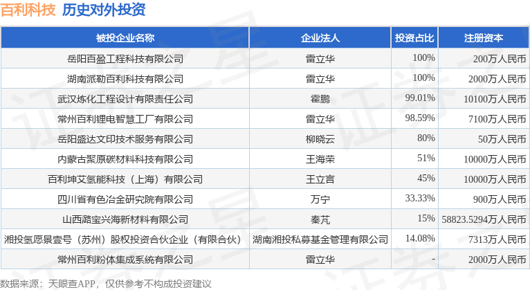 证券之星消息,根据天眼查APP显示,百利科技(603959.SH)新增一起对外投资事件,被投资公司为常州百利粉体集成系统有限公司,法定代表人雷立华,投资占比为-。该公司从事专业技术服务业,注册资本为2000万人民币。目前,百利科技共存在对外投资11项,详见下表: