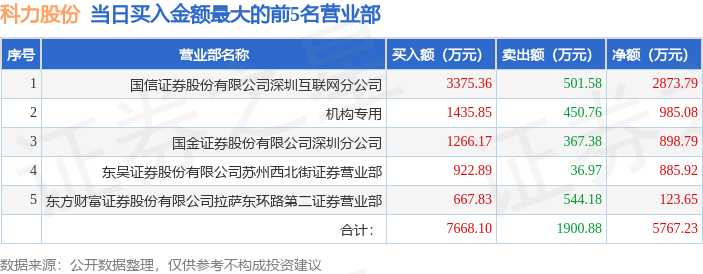 证券小知识:龙虎榜是交易所披露的竞价交易公开信息,现身龙虎榜的个股都是当日最为活跃的个股,是投资者日常重点关注的数据。交易所公布当日买入金额和卖出金额前五名的席位,其中一些席位代表特殊意义,如机构专用席位是指基金专用席位、券商自营专用席位、社保专用席位、券商理财专用席位、保险机构专用席位、保险机构租用席位、QFII专用席位等机构投资者买卖证券的专用通道和席位。深股通专用、沪股通专用为北向资金的交易席位。