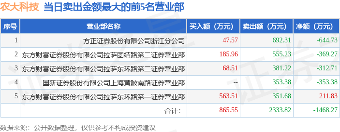 证券之星消息,沪深交易所2026年2月2日公布的交易公开信息显示,农大科技(920159)因当日换手率达到20%的前5只股票登上龙虎榜。此次是近5个交易日内第3次上榜。