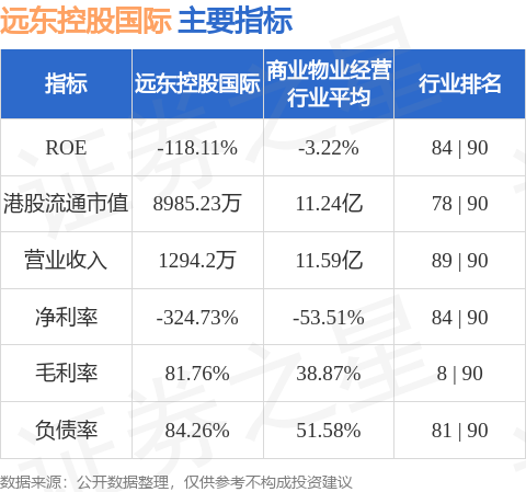 远东控股国际港股市值8985.23万港元,在商业物业经营行业中排名第78。主要指标见下表: