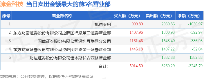 从龙虎榜公布的当日买卖数据来看,机构合计净卖出1030.97万元。