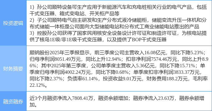 该股为储能,新能源汽车,核电概念热股,当日储能概念上涨1.1%,新能源汽车概念上涨0.68%,核电概念上涨0.59%。