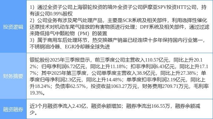 证券之星消息,银轮股份2月4日涨停收盘,收盘价43.21元。该股于9点30分涨停,20次打开涨停,截止收盘封单资金为1435.04万元,占其流通市值0.04%。