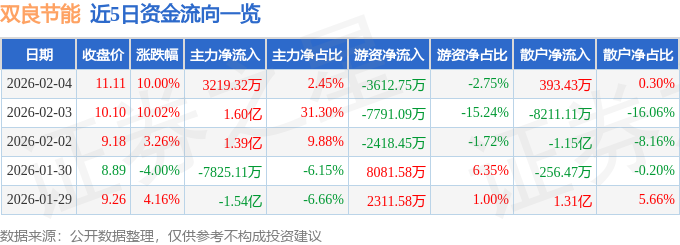 证券之星消息,双良节能2月4日涨停收盘,收盘价11.11元。该股于9点25分涨停,4次打开涨停,截止收盘封单资金为1.96亿元,占其流通市值0.94%。