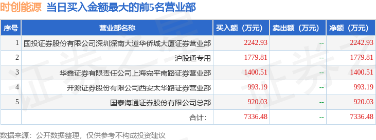 证券之星消息,沪深交易所2026年2月4日公布的交易公开信息显示,时创能源(688429)因有价格涨跌幅限制的日收盘价格涨幅达到15%的前五只证券登上龙虎榜。此次是近5个交易日内第1次上榜。