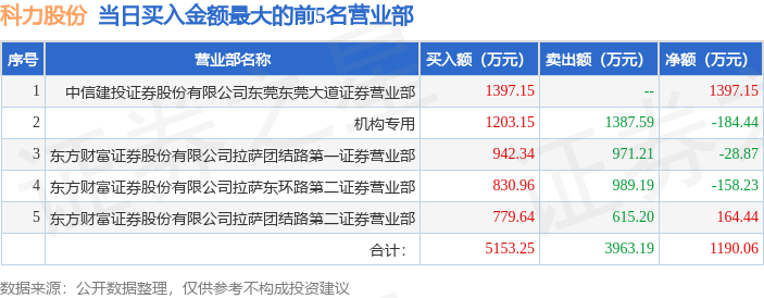 证券小知识:龙虎榜是交易所披露的竞价交易公开信息,现身龙虎榜的个股都是当日最为活跃的个股,是投资者日常重点关注的数据。交易所公布当日买入金额和卖出金额前五名的席位,其中一些席位代表特殊意义,如机构专用席位是指基金专用席位、券商自营专用席位、社保专用席位、券商理财专用席位、保险机构专用席位、保险机构租用席位、QFII专用席位等机构投资者买卖证券的专用通道和席位。深股通专用、沪股通专用为北向资金的交易席位。
