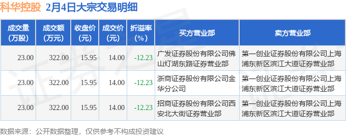 证券之星消息,2月4日科华控股发生大宗交易,交易数据如下: