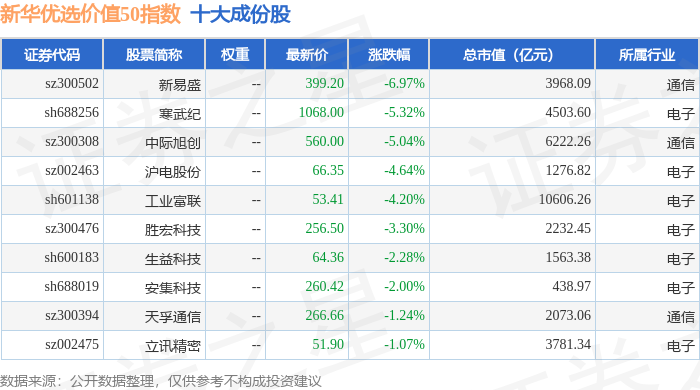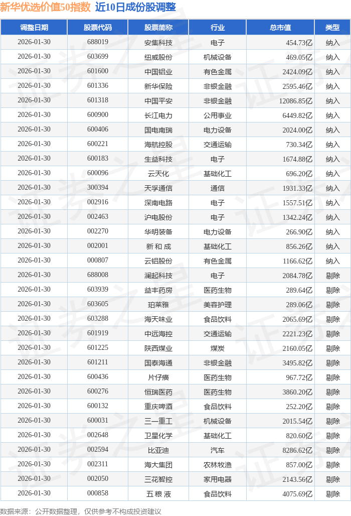 近10日内新华优选价值50(989004)指数成份股做了调整,新纳入了16只股票,剔除了16只股票。