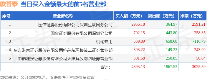 证券小知识:龙虎榜是交易所披露的竞价交易公开信息,现身龙虎榜的个股都是当日最为活跃的个股,是投资者日常重点关注的数据。交易所公布当日买入金额和卖出金额前五名的席位,其中一些席位代表特殊意义,如机构专用席位是指基金专用席位、券商自营专用席位、社保专用席位、券商理财专用席位、保险机构专用席位、保险机构租用席位、QFII专用席位等机构投资者买卖证券的专用通道和席位。深股通专用、沪股通专用为北向资金的交易席位。