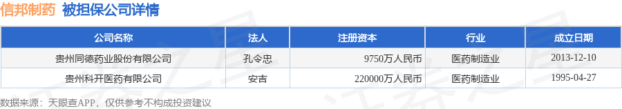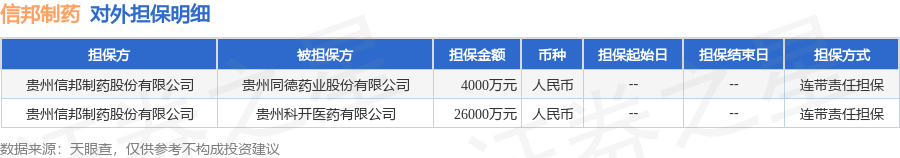 信邦制药2月4日披露2笔对外担保,被担保公司2家。对外担保明细如下表: