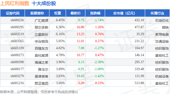 证券之星消息,3月5日,上民红利(000153)指数报收于3418.68点,涨0.4%,成交93.0亿元,换手率2.4%。当日该指数成份股中,上涨的有20家,石英股份以10.0%的涨幅领涨,下跌的有10家,东方环宇以3.84%的跌幅领跌。