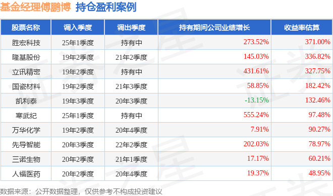 傅鹏博管理的睿远成长价值混合A基金在25年1季度买入胜宏科技,已连续持有1年又0个季度。持有期间的估算收益率为371%,持有期间胜宏科技在2024年到2025年的年报归属净利润增幅达273.52%。