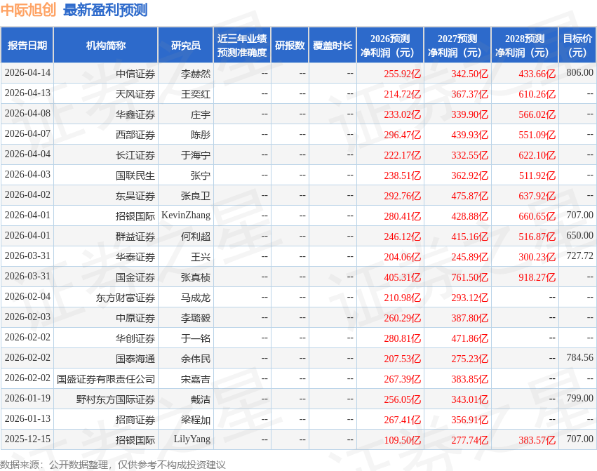 群益证券(香港)有限公司何利超近期对中际旭创进行研究并发布了研究报告《1.6T推动一季度盈利高速增长,后续业绩具备高确定性》,上调中际旭创目标价至1000.0元,给予增持评级。