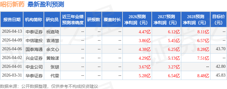 最新盈利预测明细如下: