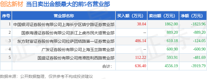 证券之星消息,沪深交易所2026年4月17日公布的交易公开信息显示,创达新材(920012)因当日换手率达到20%的前5只股票,当日价格振幅达到30%的前5只股票,当日收盘价涨幅达到20%的前5只股票登上龙虎榜。此次是近5个交易日内第4次上榜。