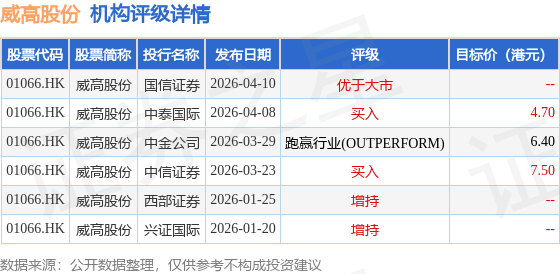 机构评级详情见下表: