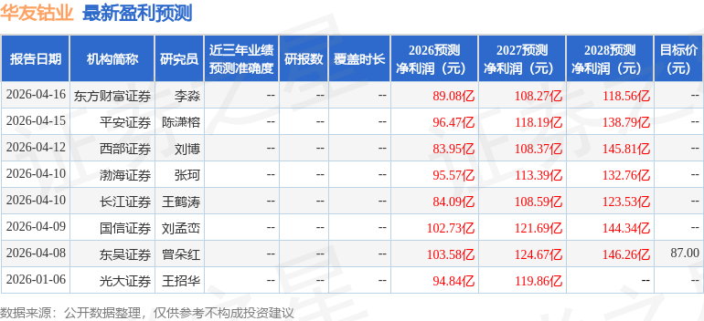 最新盈利预测明细如下: