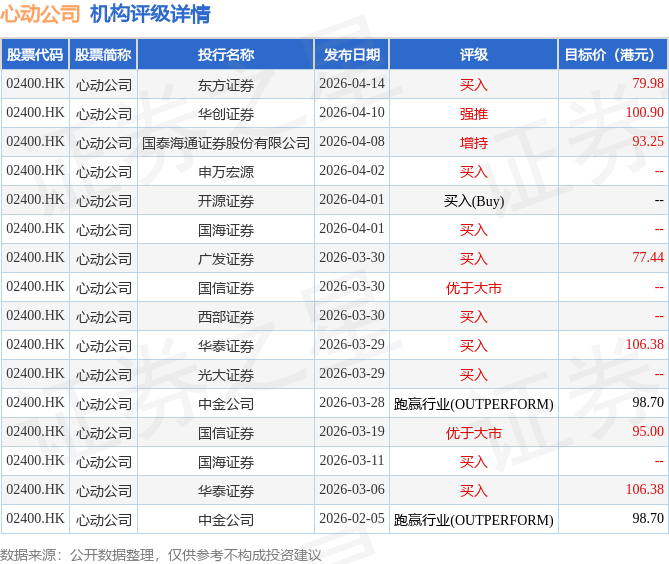 截至2026年4月17日收盘,心动公司(02400.HK)报收于64.2港元,下跌1.53%,成交量219.47万股,成交额1.41亿港元。投行对该股的评级以买入为主,近90天内共有9家投行给出买入评级,近90天的目标均价为95.19港元。东方证券最新一份研报给予心动公司买入评级,目标价79.98港元。