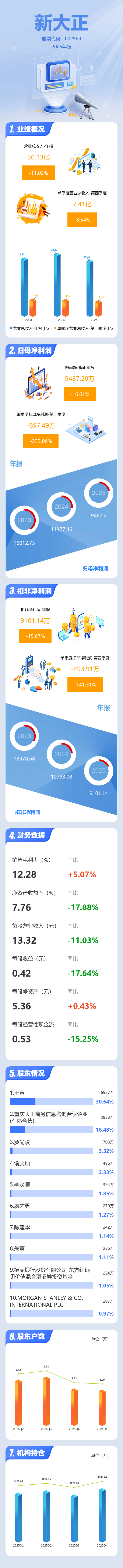 证券之星消息,新大正2025年年报显示,当年度公司主营收入30.13亿元,同比下降11.03%;归母净利润9487.2万元,同比下降16.61%;扣非净利润9101.14万元,同比下降15.68%;其中2025年第四季度,公司单季度主营收入7.41亿元,同比下降8.54%;单季度归母净利润-897.49万元,同比下降233.06%;单季度扣非净利润-493.91万元,同比下降141.31%;负债率37.51%,投资收益281.59万元,财务费用-105.89万元,毛利率12.28%。