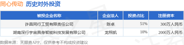 同心传动(920454.BJ)新增一起对外投资,被投资公司为湖南深行宇宙具身智能科技发展有限公司