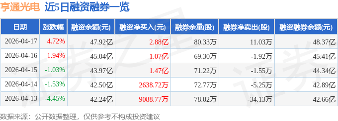 亨通光电融资融券信息显示,融资方面,当日融资买入13.38亿元,融资偿还10.5亿元,融资净买入2.88亿元,净买入额两市排名第2,连续3日净买入累计5.42亿元。融券方面,融券卖出12.27万股,融券偿还1.24万股,融券余量80.33万股,融券余额4470.11万元。融资融券余额48.37亿元。
