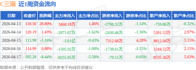 资金流向数据方面,本周三瑞智能主力资金合计净流出2.53亿元,游资资金合计净流入355.77万元,散户资金合计净流入2.49亿元。本周资金流向一览见下表: