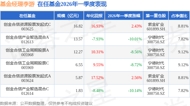 证券之星消息,截止2026年一季度末,基金经理李游旗下共管理6只基金,本季度表现最佳的为创金合信资源股票发起式A(003624),季度净值涨2.56%。