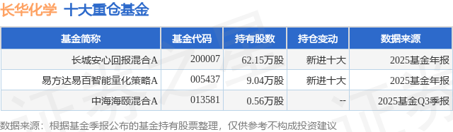 重仓长华化学的公募基金请见下表: