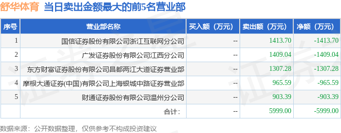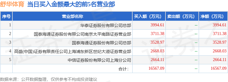 证券之星消息,沪深交易所2026年4月20日公布的交易公开信息显示,舒华体育(605299)因有价格涨跌幅限制的日收盘价格涨幅偏离值达到7%的前五只证券登上龙虎榜。此次是近5个交易日内第1次上榜。