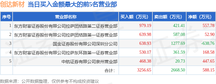 证券之星消息,沪深交易所2026年4月20日公布的交易公开信息显示,创达新材(920012)因当日换手率达到20%的前5只股票登上龙虎榜。此次是近5个交易日内第5次上榜。